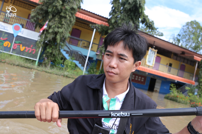 โรงเรียนของครูวสุธรไม่ได้ถูกน้ำท่วม แต่ “บ้านของเด็กท่วม 100%” จนต้องหยุดเรียนทั้งหมด ครูต้องพายเรือไปมอบแบบฝึกหัดและสำรวจความเป็นอยู่ของนักเรียนทุกสัปดาห์
