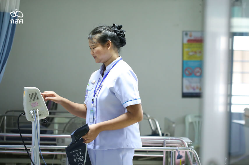 “เคสของน้องหน่อยถือเป็นกรณีพิเศษที่เราอยากลองให้โอกาสกับเด็ก เดิมทีเราจะไม่รับเพราะเขาเพิ่งอายุ 17 ยังเด็กเกินไป หลายอย่างอาจไม่พร้อม แต่ด้วยความที่เขาอยากเรียนมาก เราก็เลยอยากลองดู ปรากฏว่าเขาก็ทำได้ดีเลยค่ะ ก็จะมีปัญหาเรื่องการเรียนอยู่บ้างอย่างเช่นเรื่องภาษา เรื่องความรู้ทางการแพทย์ เขาก็จะช้ากว่าคนอื่นหน่อย แต่ก็จะมีข้อดีตรงที่เขากระตือรือร้น อยากรู้ว่าอาชีพนี้ทำอะไรบ้าง การดูแลผู้ป่วยที่ถูกต้องควรทำอย่างไร อาจเป็นเพราะตอนดูแลแม่ที่ป่วยเขามีทักษะเดิมอยู่บ้างแล้ว มาเรียนตรงนี้ก็เลยทำให้เข้าใจอะไรได้ง่ายขึ้น ตอนมาฝึกงานจริงที่โรงพยาบาล เขาก็ช่วยดูแลผู้ป่วยได้ดีทีเดียวค่ะ