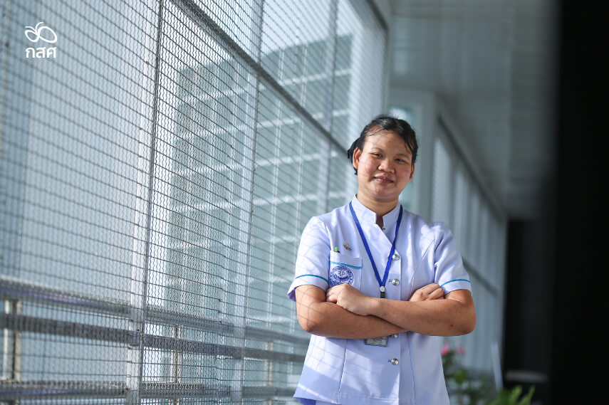 “ตอนเรียนจบ ม.ปลาย ทางโรงเรียนอนันตรักษ์การบริบาลมาออกบูธแนะแนวการศึกษาต่อที่โรงเรียนค่ะ หนูอยากเรียนต่อที่นี่มากก็เลยไปปรึกษาครู ครูก็ช่วยประสานงานจนทำให้เราได้รับโอกาสจาก กสศ. ให้เรียนต่อที่นี่”