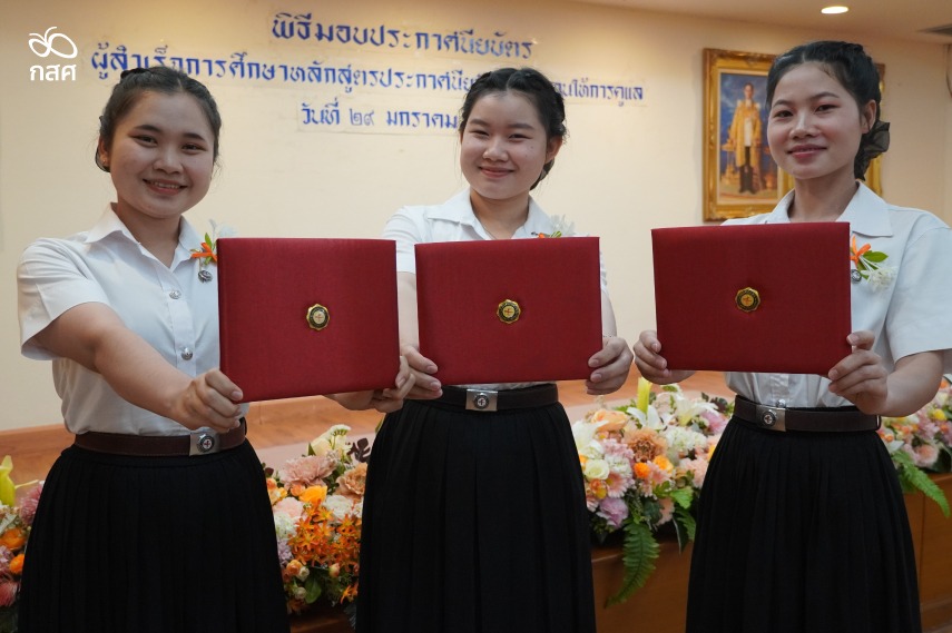 จากเด็ก ม.6 ที่ไม่เคยกล้าฝันถึงอนาคต เพราะกำแพงความเหลื่อมล้ำที่กั้นโอกาสทางการศึกษา วันนี้ นิส- นภาภรณ์, ปัท-ปสุดา และ ดา-รุ่งทิวา ก้าวสู่อาชีพพนักงานให้การดูแล หรือ Caregiver อย่างเต็มภาคภูมิ หลังจบหลักสูตรประกาศนียบัตรพนักงานให้การดูแล (Caregiver: CG) คณะพยาบาลศาสตร์ มหาวิทยาลัยศรีนครินทรวิโรฒ ที่ใช้เวลาเรียนเพียง 6 เดือน และผ่านการฝึกงานที่ สถานสงเคราะห์ผู้สูงอายุคามิลเลียน ปราจีนบุรี โดยได้รับการคัดเลือกเข้าทำงานทันที