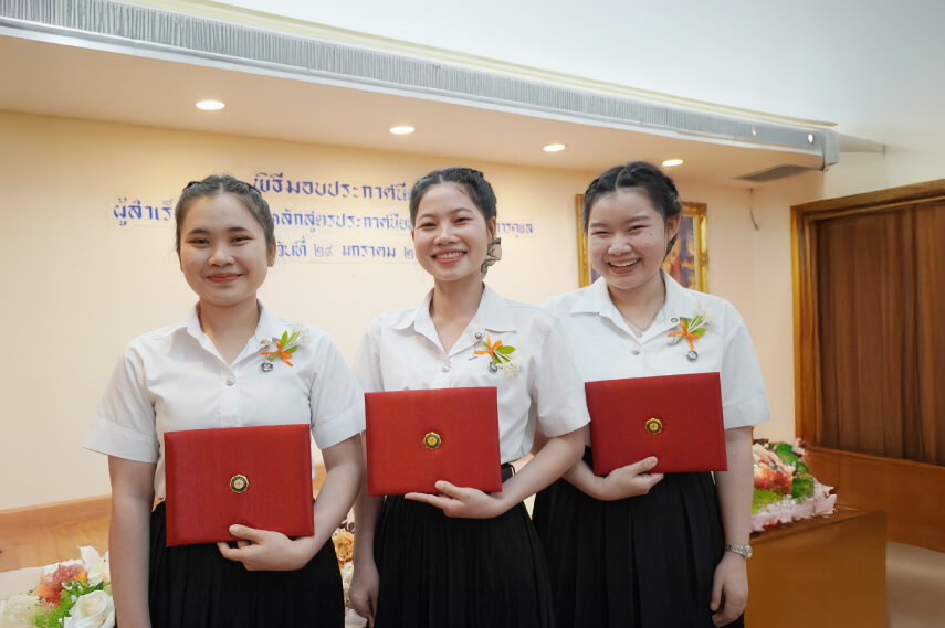 จากเด็ก ม.6 ที่ไม่เคยกล้าฝันถึงอนาคต เพราะกำแพงความเหลื่อมล้ำที่กั้นโอกาสทางการศึกษา วันนี้ นิส- นภาภรณ์, ปัท-ปสุดา และ ดา-รุ่งทิวา ก้าวสู่อาชีพพนักงานให้การดูแล หรือ Caregiver อย่างเต็มภาคภูมิ หลังจบหลักสูตรประกาศนียบัตรพนักงานให้การดูแล (Caregiver: CG) คณะพยาบาลศาสตร์ มหาวิทยาลัยศรีนครินทรวิโรฒ ที่ใช้เวลาเรียนเพียง 6 เดือน และผ่านการฝึกงานที่ สถานสงเคราะห์ผู้สูงอายุคามิลเลียน ปราจีนบุรี โดยได้รับการคัดเลือกเข้าทำงานทันที