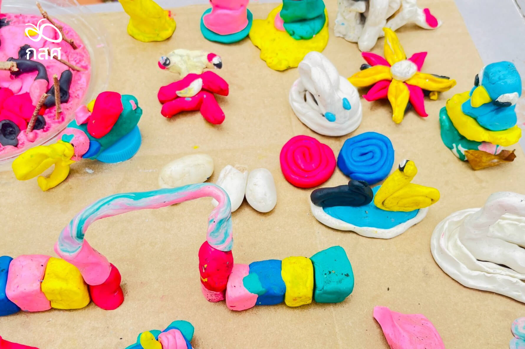 ‘งาน’ ที่ครูหนูดีว่า คือกิจกรรมที่จัดมาแล้วทุกครั้งที่เธอมาอยู่กับเด็ก ๆ ในศูนย์อพยพ เป็นกิจกรรมศิลปะ วาดภาพ ระบายสี ปั้นดินน้ำมัน ด้วยจุดประสงค์ให้เด็กได้ผ่อนคลาย ทั้งเป็นความพยายามสำรวจอารมณ์ความรู้สึก โดยเลี่ยงวิธีสื่อสารผ่านถ้อยคำ