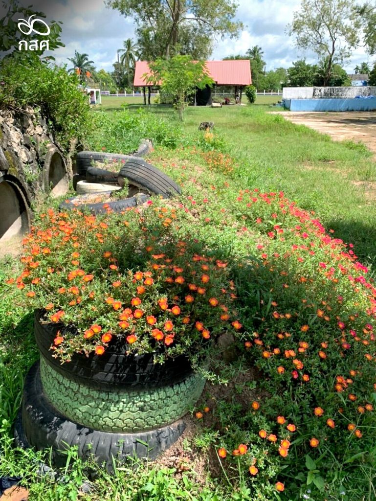 วันนี้ หลุมหลบภัยของโรงเรียนบ้านเสาธงชัยไม่ได้เป็นเพียงหลุมดินหรือบังเกอร์ทั่วไป แต่เป็น “สวนดอกไม้ของความหวัง”