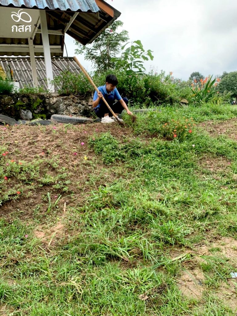 ครูกิ๊กอธิบายว่า แค่เด็กๆ มีดอกไม้ของตัวเองในหลุมหลบภัย ก็เหมือนมีพลังบวกเล็กๆ ที่ทำให้ใจสงบลง คลายความกังวล มาเรียนอย่างมีความสุข