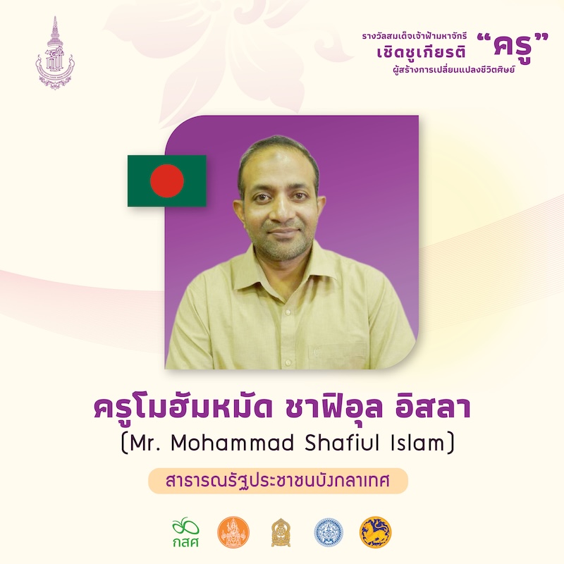 - ครูโมฮัมหมัด ชาฟิอุล อิสลา (Mr. Mohammad Shafiul Islam) : สาธารณรัฐประชาชนบังกลาเทศ