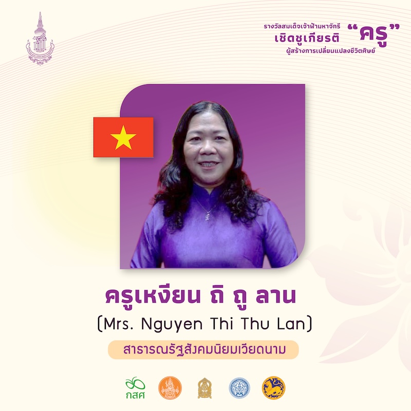 - ครูเหงียน ถิ ถู ลาน (Mrs. Nguyen Thi Thu Lan) : สาธารณรัฐสังคมนิยมเวียดนาม