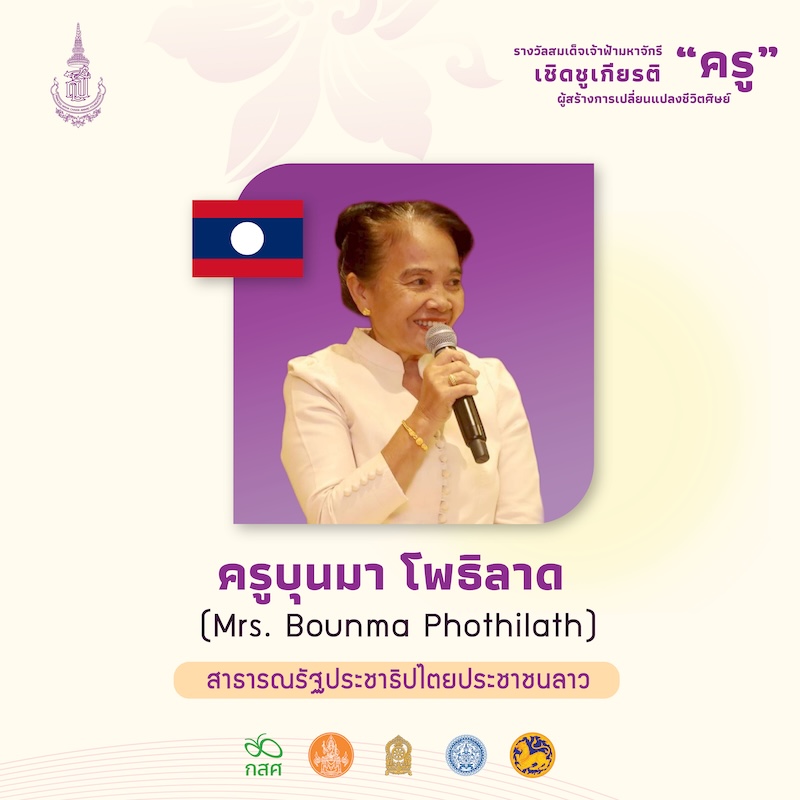- ครูบุนมา โพธิลาด (Mrs. Bounma Phothilath) : สาธารณรัฐประชาธิปไตยประชาชนลาว