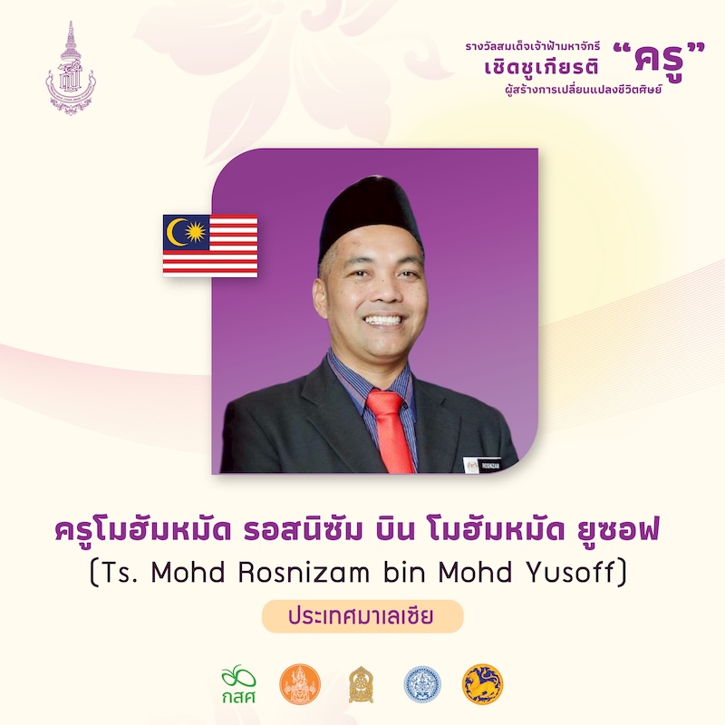 - ครูโมฮัมหมัด รอสนิซัม บิน โมฮัมหมัด ยูซอฟ (Ts. Mohd Rosnizam bin Mohd Yusoff) : ประเทศมาเลเซีย