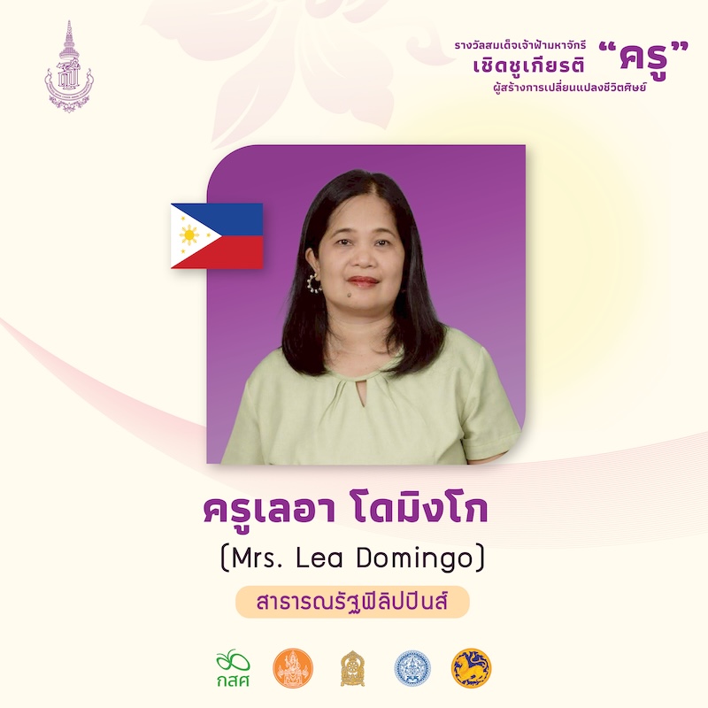 - ครูเลอา โดมิงโก (Mrs. Lea Domingo) : สาธารณรัฐฟิลิปปินส์
