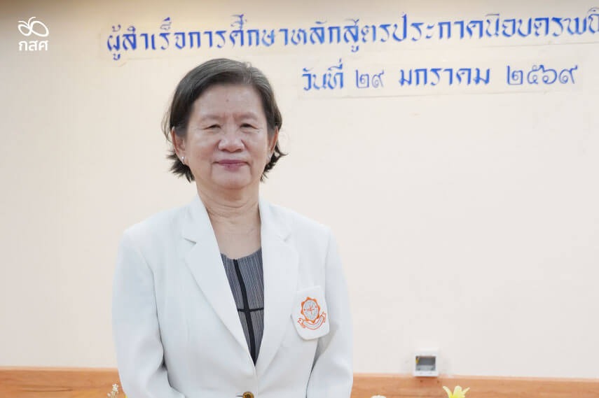 “อยากบอกเด็ก ๆ ว่า การที่เขาได้รับคัดเลือกให้ได้รับทุนและเข้ามาเรียนหลักสูตรผู้ให้การดูแลถือว่าเป็นเกียรติและมีบุญมาก ๆ อยากให้เก็บสิ่งที่ได้รับ และความภาคภูมิใจนี้ไปปฏิบัติหน้าที่ให้สมเกียรติของคำว่า ‘ผู้ให้การดูแล’ เพราะเราเป็นส่วนหนึ่งของบุคลากรทางการพยาบาล ต้องดูแลผู้ป่วยอย่างเต็มศักยภาพ ดูแลด้วยหัวใจ ด้วยทักษะ และสมองที่จะทำให้คนไข้ได้รับการดูแลอย่างดีที่สุด”