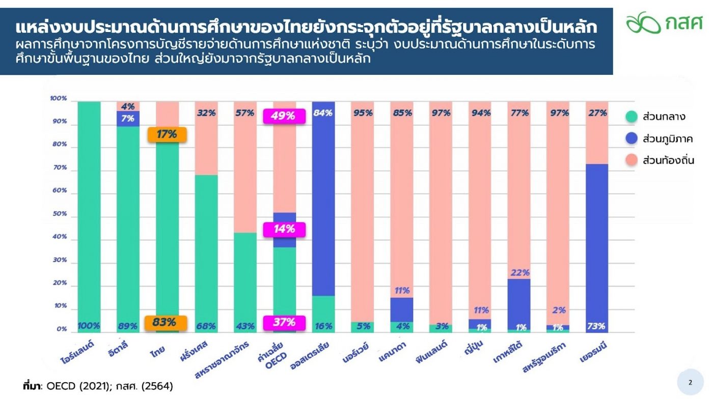 อย่างไรก็ตาม แม้การลงทุนด้านการศึกษาของไทย ทั้งจากรัฐ ท้องถิ่น และเอกชน จะถือว่าอยู่ในระดับสูง แต่ผลการศึกษาจาก โครงการบัญชีรายจ่ายด้านการศึกษาแห่งชาติ (NEA) สะท้อนว่า โครงสร้างการจัดสรรงบประมาณยังไม่สอดคล้องกับความจำเป็นจริงของพื้นที่ โดยเฉพาะในระดับการศึกษาขั้นพื้นฐานที่งบประมาณกว่า 83% ถูกตัดสินใจจากส่วนกลาง ก่อนส่งลงไปยังโรงเรียนเกือบ 30,000 แห่งทั่วประเทศ