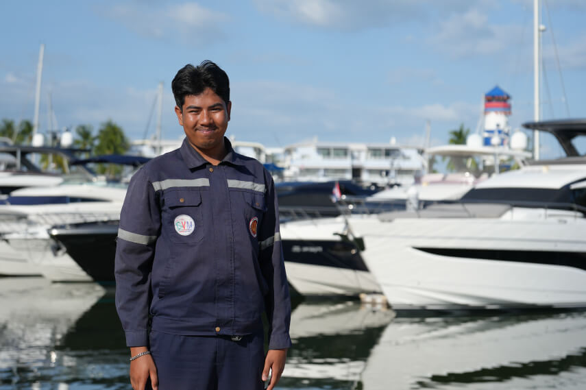 “ตอนนี้ผมกำลังจะเรียนจบชั้น ปวส.1 แล้วครับ ยังเหลืออีกหนึ่งปี ซึ่งจะเป็นการไปฝึกงานที่ภูเก็ตโบ๊ทลากูนครับ” เขากล่าวด้วยน้ำเสียงตื่นเต้นที่กำลังจะได้นำความรู้ที่เรียนมาไปปฏิบัติจริงบนเรือยอร์ชสุดหรู ที่ในวัยเด็กเคยมองว่าไกลเกินเอื้อม