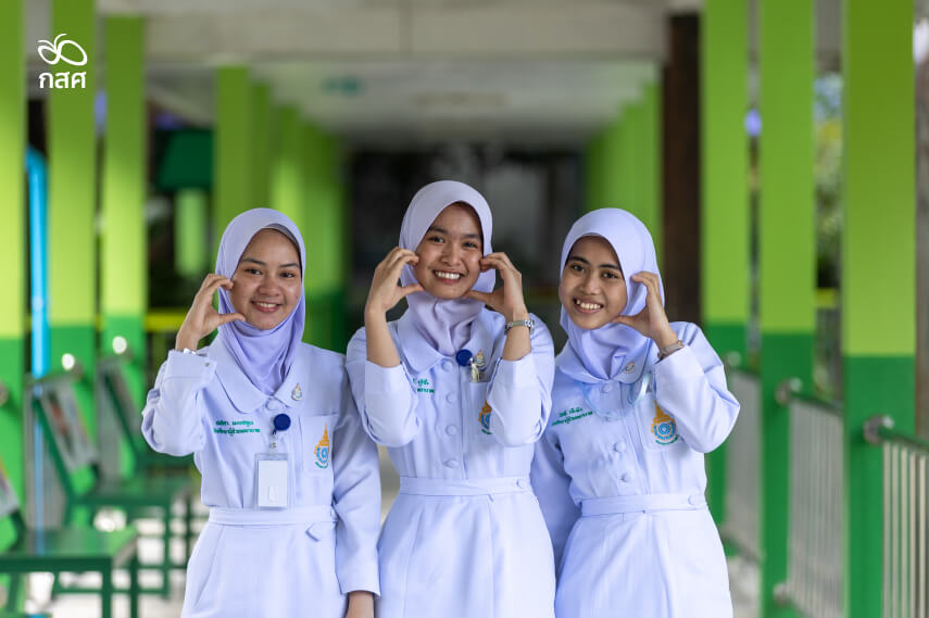 “เด็กที่เข้ามาบางคนเขาไม่ได้เข้มแข็ง ไม่ได้มั่นใจ เด็กบางคนไม่กล้าสบตา ไม่กล้าพูด เป็นเด็กกลุ่มเปราะบาง บางคนเพิ่งเคยเข้าเมืองนราธิวาสครั้งแรก บางคนบ้านอยู่ลึกเข้าไปหลังสวนยาง พอเขามาที่นี่เขาก็ตื่นตาตื่นใจกับบรรยากาศในคณะพยาบาล ดังนั้นนอกจากหลักสูตรเกี่ยวกับการพยาบาลแล้ว เรายังมีกิจกรรมเสริมหลักสูตรเพื่อปรับจุดอ่อนเหล่านี้ เช่น พัฒนาบุคลิกภาพ สอนการอ่านจับใจความภาษาไทย สอนภาษาอังกฤษ สอนเรื่องการเก็บออมเงิน การเตรียมตัวสัมภาษณ์และทำเรซูเม่ ฯลฯ” รศ.ดร.ศิริพันธุ์ ลงรายละเอียด