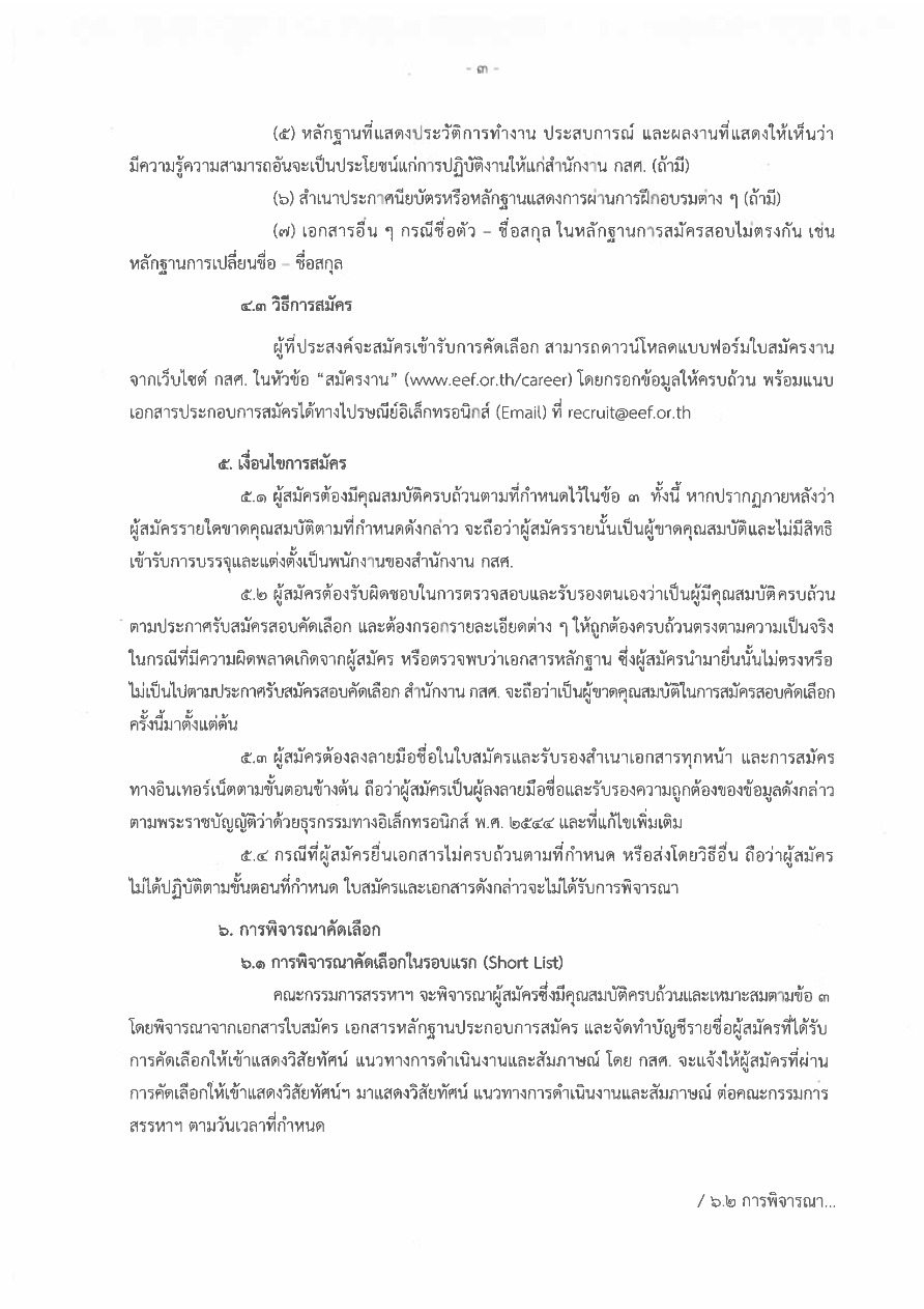 - ดาวน์โหลดใบสมัครเข้ารับการสรรหา (โดยกรอกข้อมูลให้ครบถ้วน พร้อมแนบเอกสารประกอบการสมัครได้ทางไปรษณีย์อิเล็กทรอนิกส์ (Email) ที่ recruit@eef.or.th)