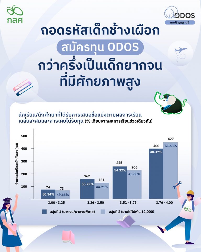 อินโฟกราฟิก ถอดรหัสเด็กช้างเผือกสมัครทุน ODOS กว่าครึ่งเป็นเด็กยากจนที่มีศักยภาพสูง 14 กรกฎาคม 256822 กันยายน 2025