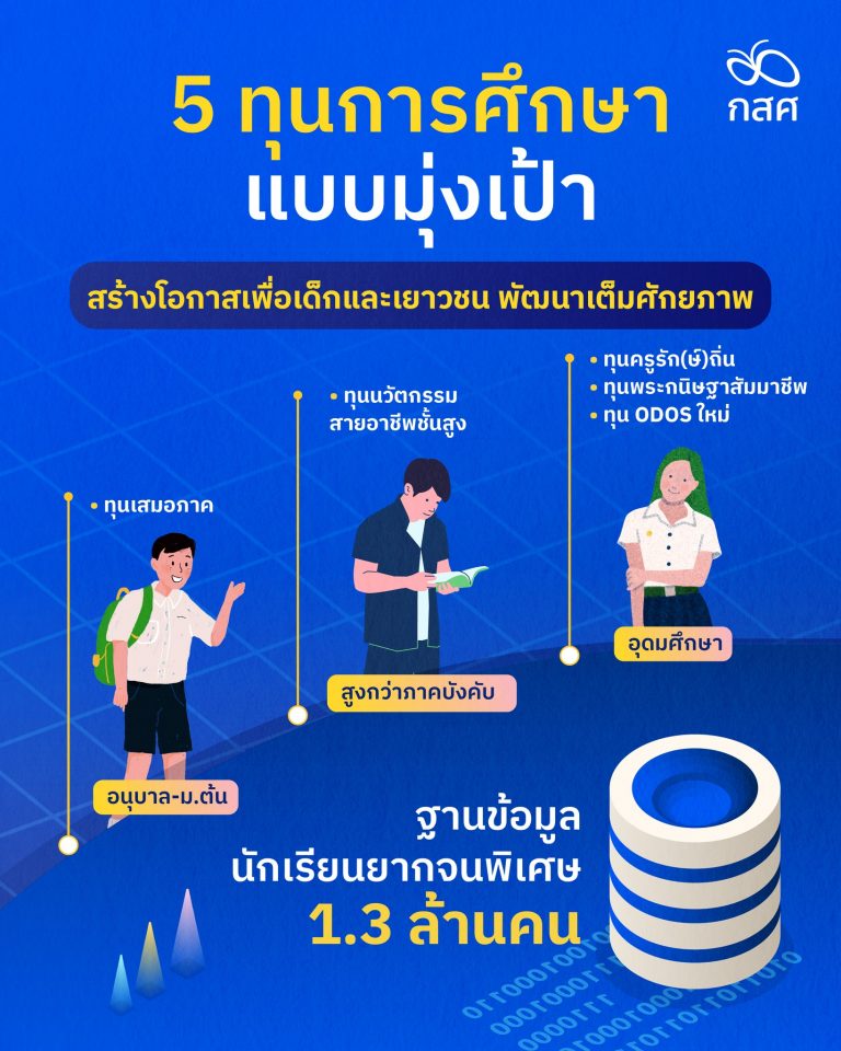 อินโฟกราฟิก 5 ทุนการแบบมุ่งเป้า สร้างโอกาสเพื่อเด็กและเยาวชน พัฒนาเต็มศักยภาพ 14 กรกฎาคม 256822 กันยายน 2025