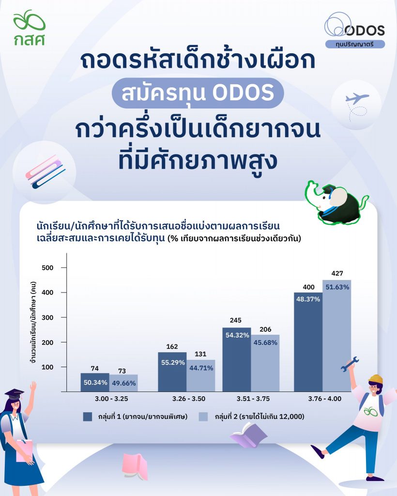 ถอดรหัสเด็กช้างเผือกสมัครทุนODOS พบว่ากว่าครึ่งเป็นเด็กยากจนที่มีศักยภาพสูง หากเด็กทุกคนได้รับโอกาสทางการศึกษาที่เสมอภาค ย่อมสามารถก้าวข้ามข้อจำกัดทางเศรษฐกิจและสังคมได้