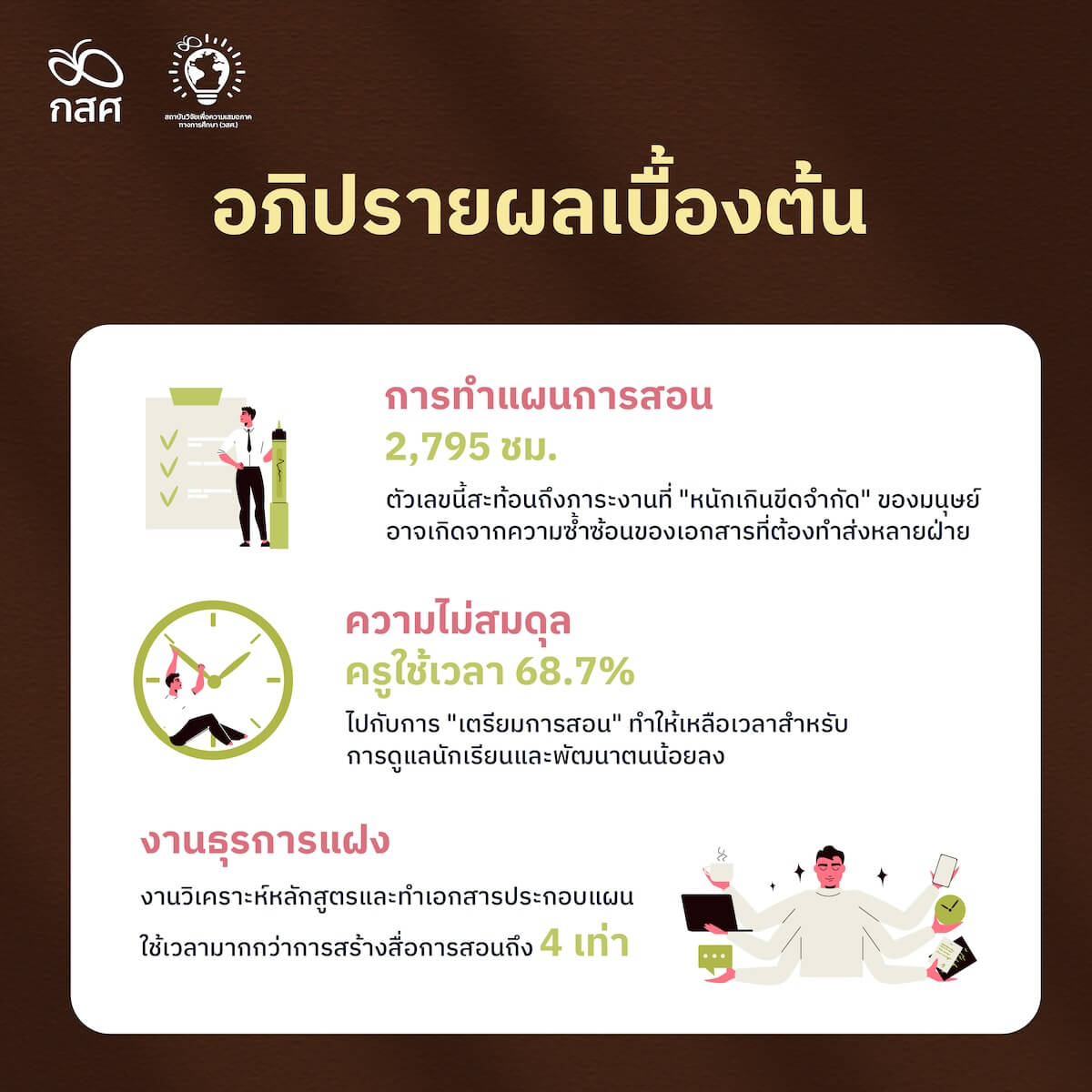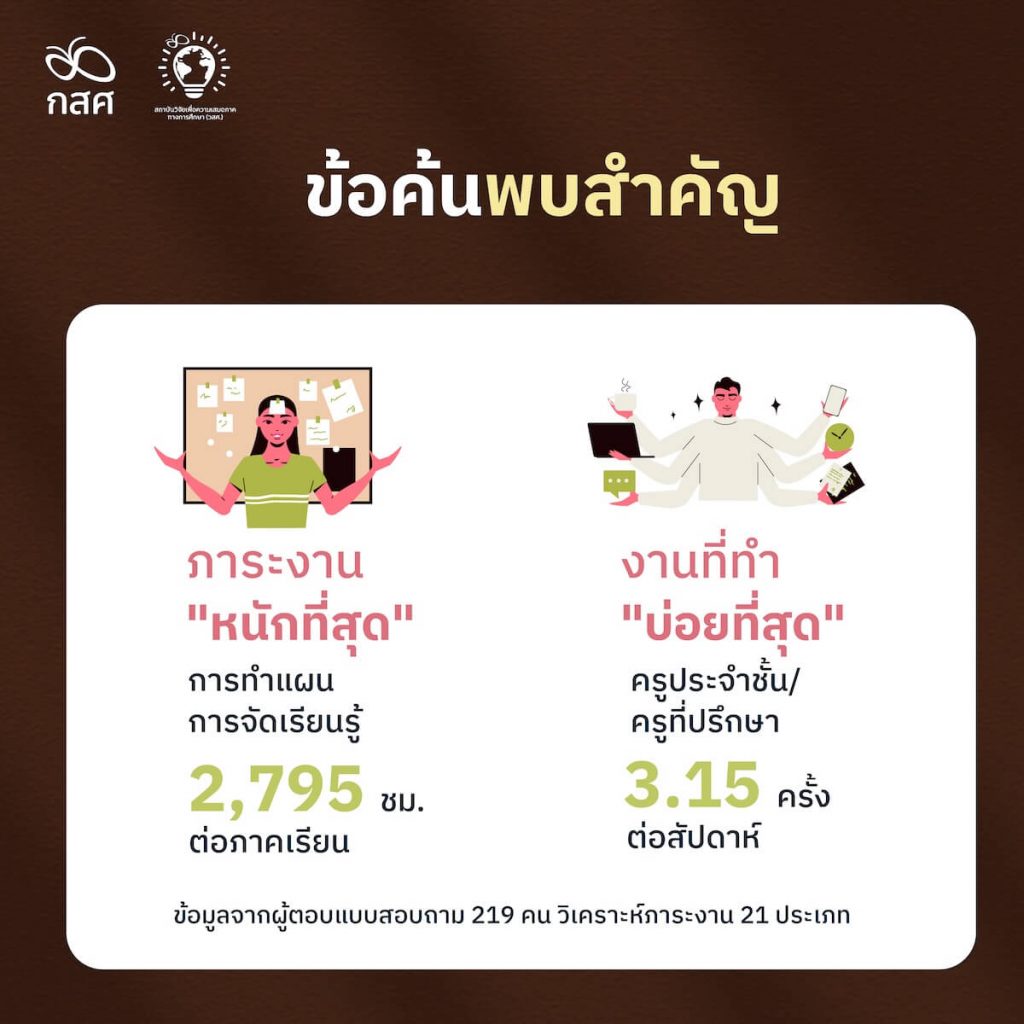 ผลสำรวจของสถาบันวิจัยเพื่อความเสมอภาคทางการศึกษา กสศ. พบว่า ครูในโรงเรียนขนาดเล็กต้องสอนเฉลี่ย 27.31 ชั่วโมงต่อสัปดาห์ สูงกว่ามาตรฐานถึง 37.6%