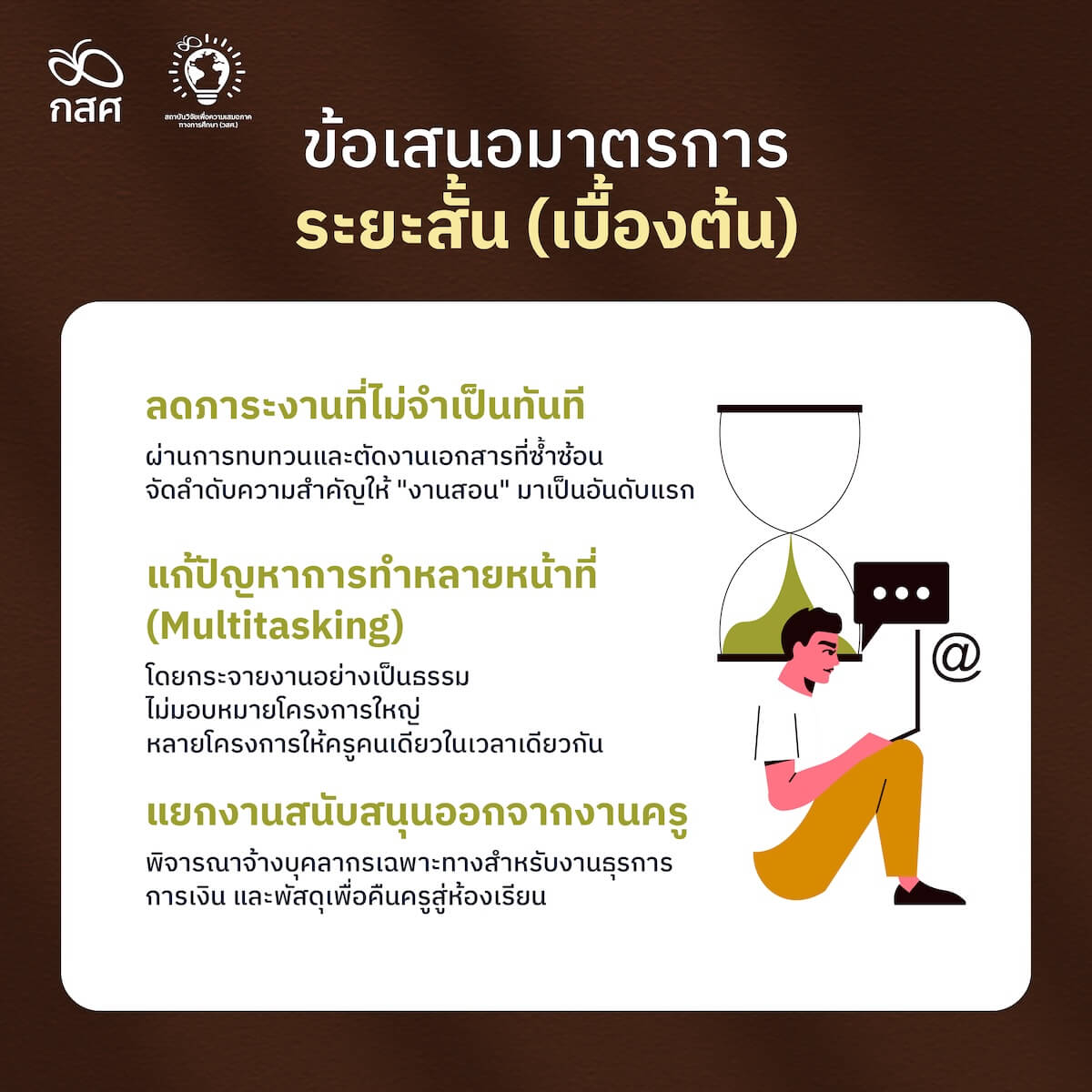 ในวันครูปีนี้ กสศ. เสนอให้ “คืนเวลาการสอนให้ครู” ด้วยการลดงานเอกสารที่ไม่จำเป็น แยกงานสนับสนุนออกจากงานสอน และจ้างบุคลากรเฉพาะทาง เพื่อให้ครูได้ทำหน้าที่หลักอย่างเต็มศักยภาพ