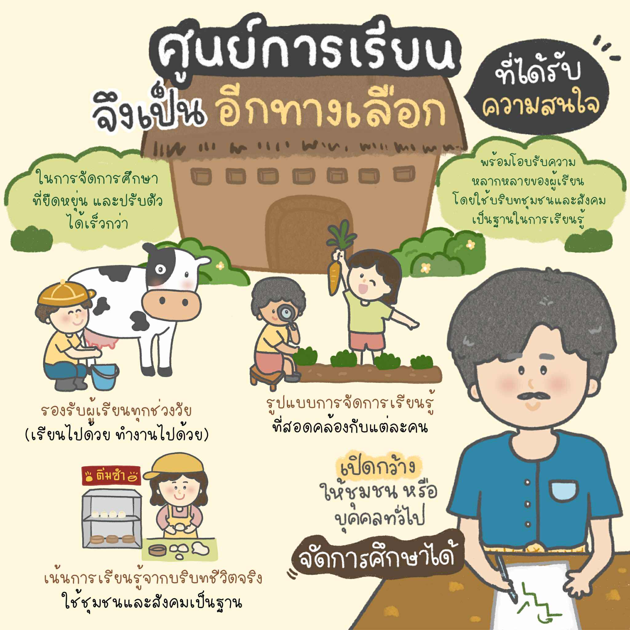 ในประเทศไทยยังมี “ศูนย์การเรียน” ที่ ใครๆ ก็จัดการศึกษาได้ โดยใช้ชีวิตจริง ชุมชน หรือความถนัดของผู้เรียน