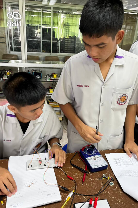 “ผมเลือกอิเล็กทรอนิกส์ เพราะอาจารย์เคยบอกว่า “เทคโนโลยีทุกอย่างเริ่มจากอิเล็กทรอนิกส์” ตอน ม.ต้น ผมชอบวิชาไฟฟ้ามาก พอเห็นอุปกรณ์และตัวอย่างที่อาจารย์เอามาให้ดู เลยรู้สึกว่าน่าสนใจและอยากเรียนต่อให้ลึกขึ้น ยิ่งเห็นวงจรที่ซับซ้อน ก็ยิ่งท้าทาย อยากรู้ว่ามันทำงานยังไง แสงวิ่งตรงไหน แต่ละจุดมีหน้าที่อะไร ผมเคยทำโครงงานให้รถวิ่งตามเส้น แล้วรู้เลยว่า ถ้าตั้งใจจริง เราทำได้ สำหรับผม งานทุกชิ้นในสายนี้ทั้งสนุกและน่าค้นหาเสมอ”