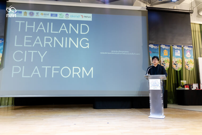 ในขณะที่ รศ.ดร.ปุ่น เที่ยงบูรณธรรม รองผู้อำนวยการ ฝ่ายแผนงานและยุทธศาสตร์องค์กร บพท. เสริมถึงความสำคัญของ “แพลตฟอร์มเมืองแห่งการเรียนรู้ประเทศไทย” (Thailand Learning City Platform) ที่เปิดโอกาสให้ทุกคนเข้าถึงทรัพยากรการเรียนรู้ได้ตลอดชีวิต เพื่อสร้างระบบนิเวศการเรียนรู้ที่เข้มแข็งและต่อเนื่อง ครอบคลุมทั้งออฟไลน์และออนไลน์ “แพลตฟอร์มเมืองแห่งการเรียนรู้ประเทศไทย ไม่ใช่ระบบดิจิทัล แต่เป็น ‘ชานชาลาแห่งการเรียนรู้’ ที่ทุกคนสามารถเข้ามาเรียนรู้ร่วมกัน เป็นพื้นที่ทำให้เมืองกลายเป็นเมืองแห่งการเรียนรู้อย่างแท้จริง”