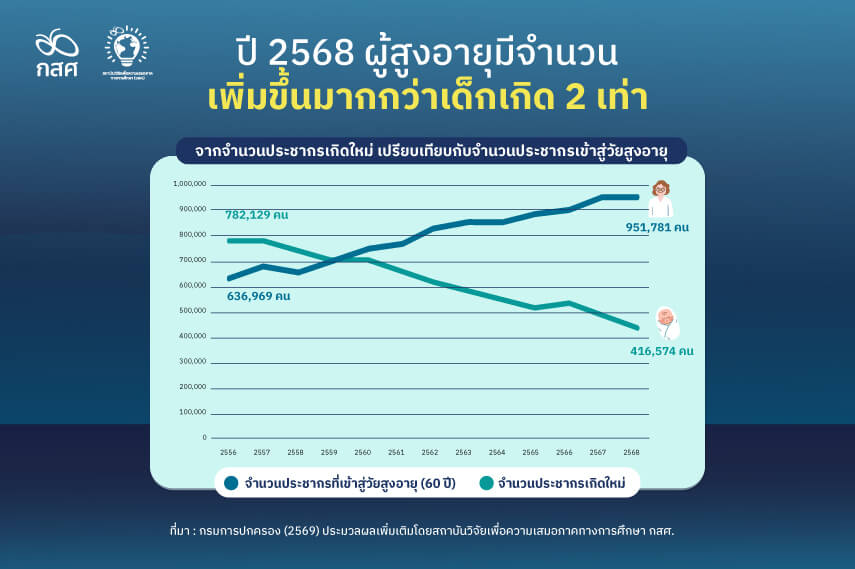 กองทุนเพื่อความเสมอภาคทางการศึกษา (กสศ.) เปิดเผยข้อมูล 5 ข้อค้นพบ ปลดล็อกวิกฤตทุนมนุษย์ สู่อนาคตที่เสมอภาค (The State of Equity in Thai Human Development) ฉายภาพวิกฤตซ้อนวิกฤตที่ประเทศไทยกำลังเผชิญ เมื่อโครงสร้างประชากรเข้าสู่ภาวะ “เกิดน้อย แก่มาก และยากจน” พร้อมเสนอทางออก หวังเป็นข้อมูลตัดสินใจสำคัญสำหรับผู้มีสิทธิเลือกตั้งและผู้กำหนดนโยบายปี 2569