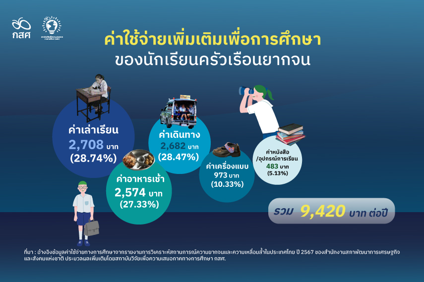 วิกฤต: นโยบายเรียนฟรี 15 ปี ยังมี “ต้นทุนแฝง” (ค่าเดินทาง, อาหาร, เครื่องแบบ) ที่ครอบครัวยากจนต้องแบกรับเองกว่าปีละ 9,420 บาท