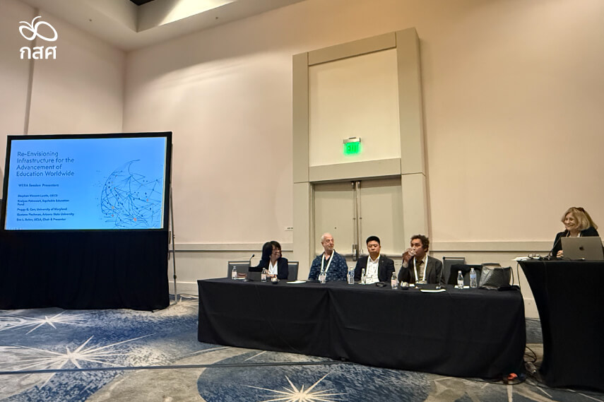 เมื่อวันที่ 10 เมษายน 2568 ดร.ไกรยส ภัทราวาท ผู้จัดการกองทุนเพื่อความเสมอภาคทางการศึกษา (กสศ.) ได้รับเชิญให้ขึ้นนำเสนอในเวทีการประชุมวิชาการนานาชาติของ World Education Research Association (WERA) ประจำปี 2026 ณ นครลอสแอนเจลิส สหรัฐอเมริกา ในหัวข้อ “The Role of the Equitable Education Fund as a Case in Point in Thailand” ซึ่งเป็นส่วนหนึ่งของ Symposium หัวข้อ “Re-Envisioning Infrastructure for the Advancement of Education Research Worldwide”