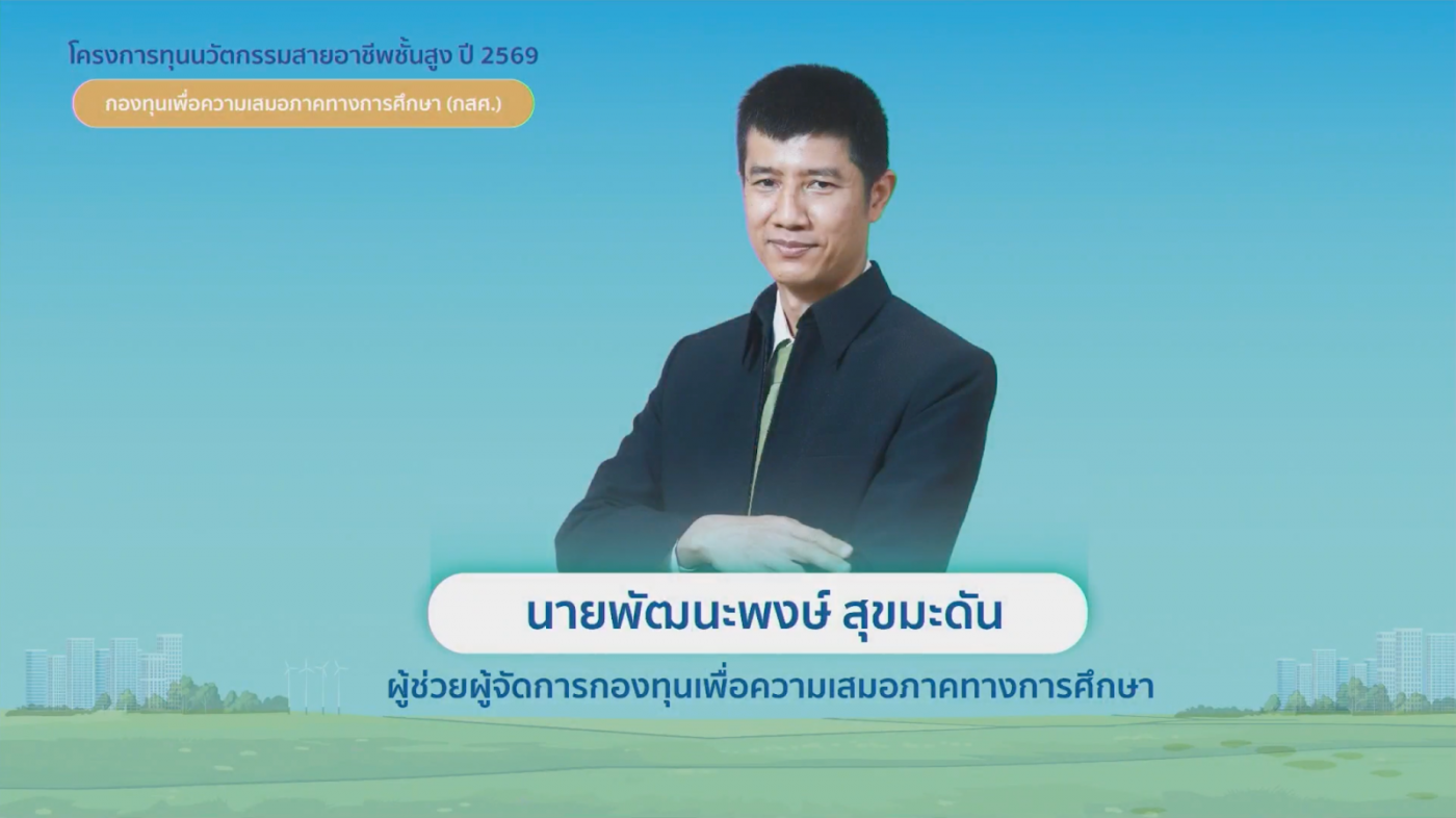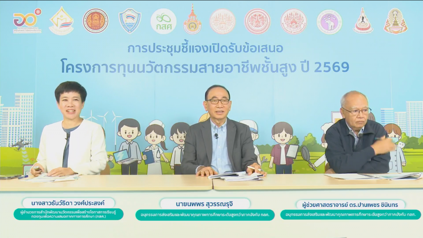 เมื่อวันที่ 24 ตุลาคม 2569 กองทุนเพื่อความเสมอภาคทางการศึกษา (กสศ.) ร่วมกับสำนักงานคณะกรรมการการอาชีวศึกษา (สอศ.) หอการค้าไทย และภาคีความร่วมมือ จัดประชุมชี้แจงการเปิดรับข้อเสนอโครงการทุนนวัตกรรมสายอาชีพชั้นสูง ปี 2569 ณ ห้องประชุมเสมอภาค กสศ. และผ่านระบบออนไลน์ เพื่อประชาสัมพันธ์เกี่ยวกับหลักเกณฑ์และแนวทางการเปิดรับข้อเสนอจากสถานศึกษาสายอาชีพที่สนใจเข้าร่วมดำเนินโครงการ