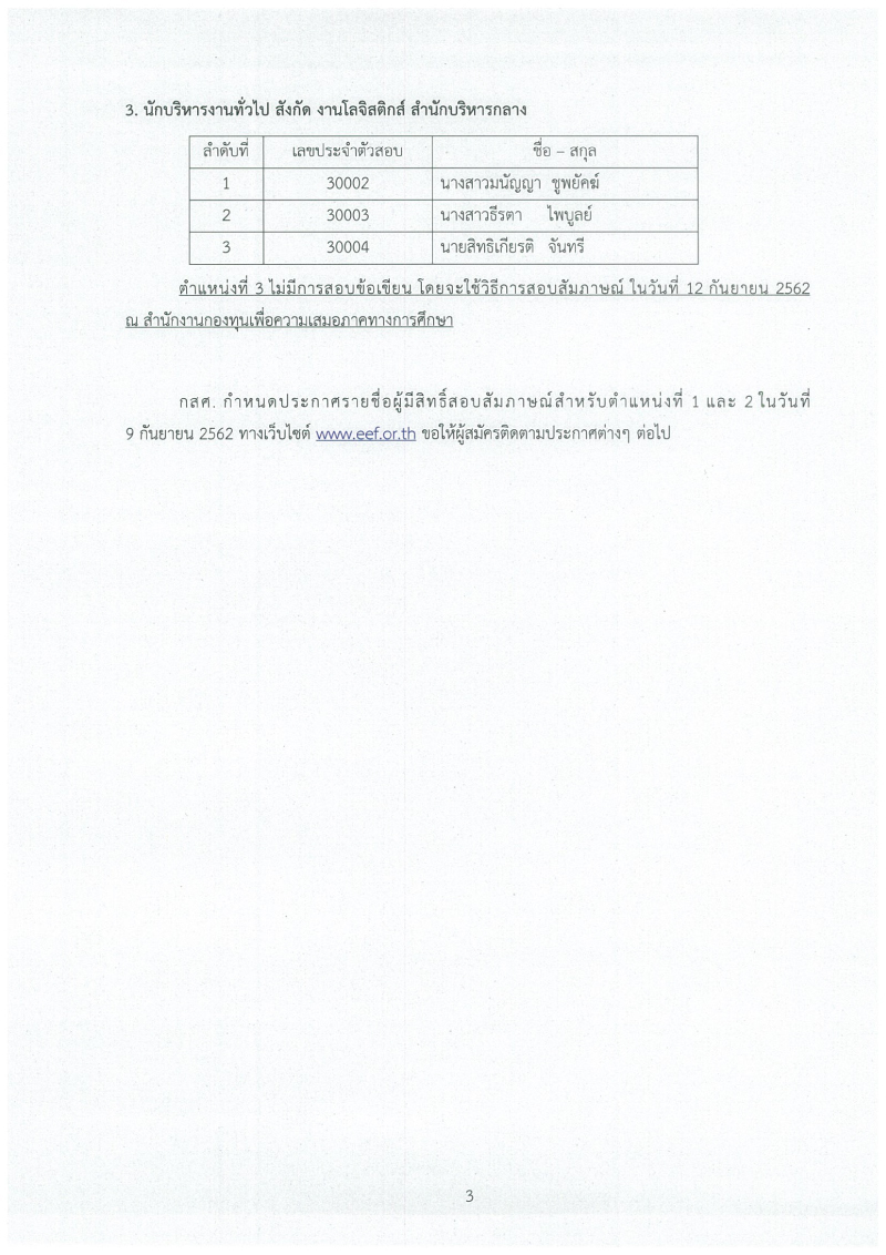 ประกาศ กสศ. เรื่องรายชื่อผู้มีสิทธิ์สอบข้อเขียนและเข้ารับการสัมภาษณ์เป็นพนักงาน ครั้งที่ ๖/๒๕๖๒ ดาวน์โหลด