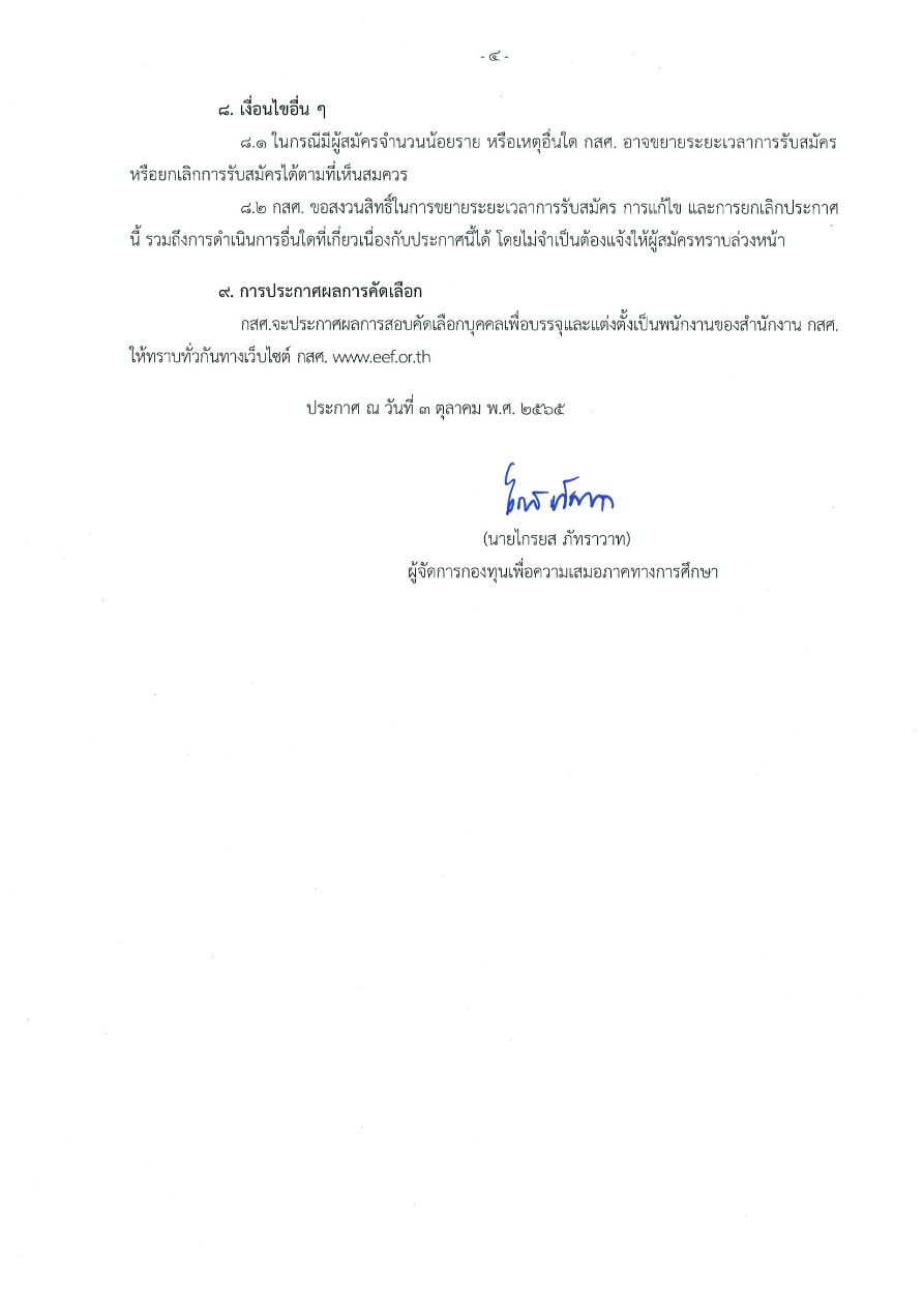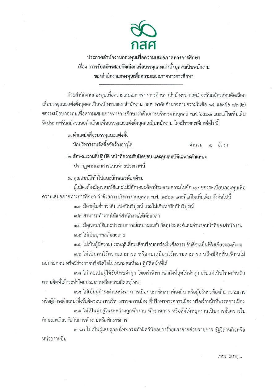 ประกาศสำนักงาน กสศ. เรื่อง การรับสมัครสอบบุคคลเพื่อบรรจุและแต่งตั้งเป็นพนักงานของสำนักงาน กสศ. ตำแหน่ง นักบริหารงานจัดซื้อจัดจ้างอาวุโส ลงวันที่ 3 ตุลาคม 2565 ขั้นตอนการสมัครงาน ดาวน์โหลดใบสมัคร ยื่นใบสมัครพร้อมอัปโหลดเอกสารประกอบการสมัคร ส่งมาที่ คลิกช่องทางติดต่อ ฝ่ายทรัพยากรบุคคล 065 5045277 เอกสารสำหรับดาวน์โหลด ประกาศการรับสมัครสอบคัดเลือก กสศ.ประกาศ กสศ. ดาวน์โหลดใบสมัครใบสมัครงาน