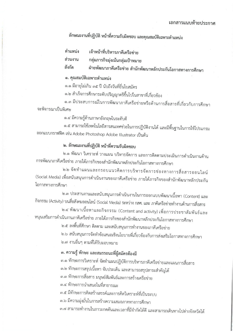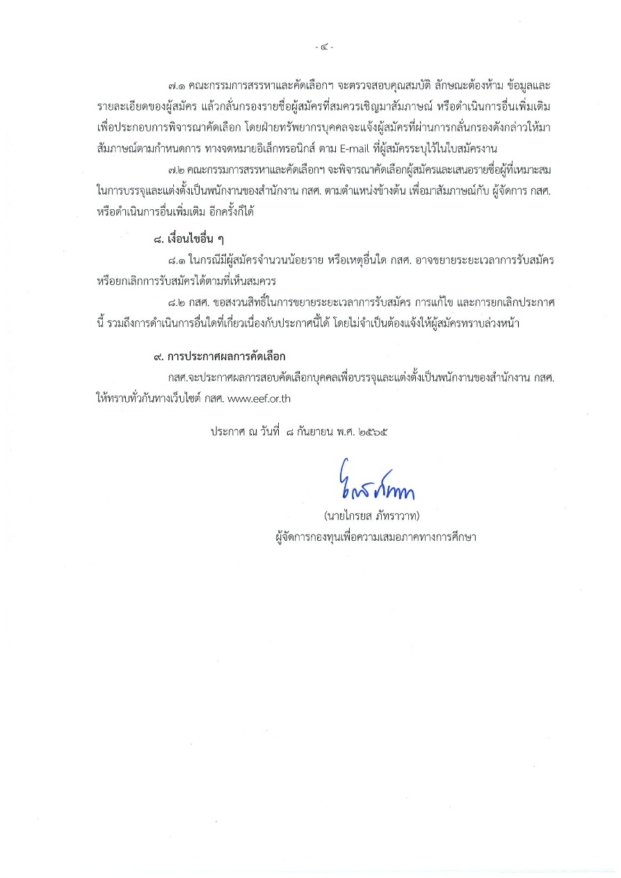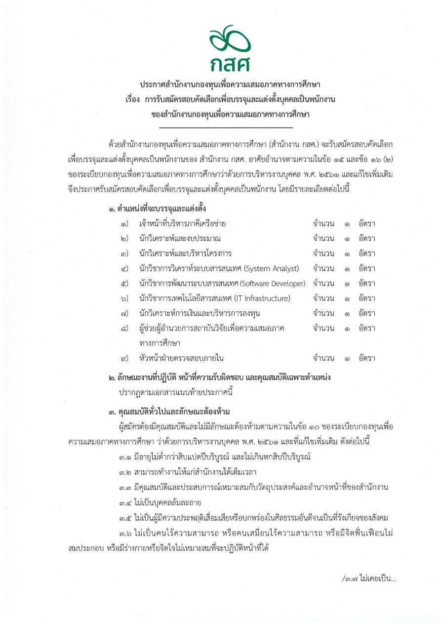 ประกาศสำนักงาน กสศ. เรื่อง การรับสมัครสอบบุคคลเพื่อบรรจุและแต่งตั้งเป็นพนักงานของสำนักงาน กสศ. ลงวันที่ 8 กันยายน 2565 รวม 9 ตำแหน่ง 9 อัตรา ขั้นตอนการสมัครงาน ดาวน์โหลดใบสมัคร ยื่นใบสมัครพร้อมอัปโหลดเอกสารประกอบการสมัคร ส่งมาที่ คลิกช่องทางติดต่อ ฝ่ายทรัพยากรบุคคล 065 5045277 เอกสารสำหรับดาวน์โหลด ประกาศการรับสมัครสอบคัดเลือก กสศ.ประกาศ กสศ. ดาวน์โหลดใบสมัครใบสมัครงาน