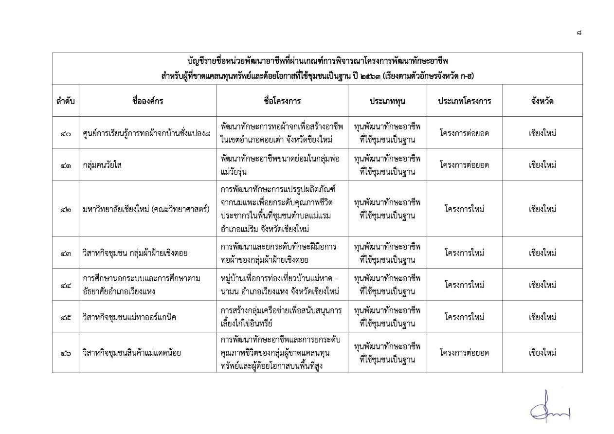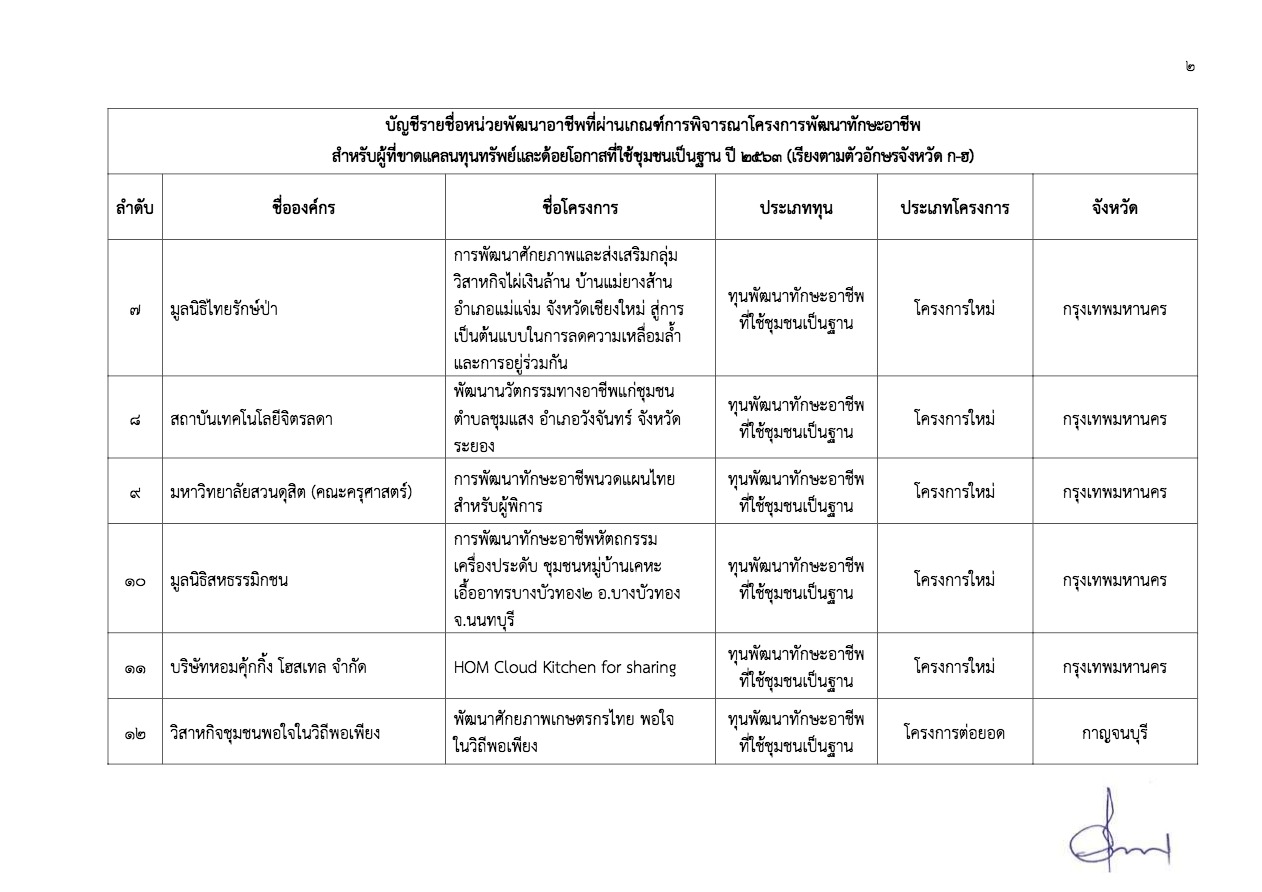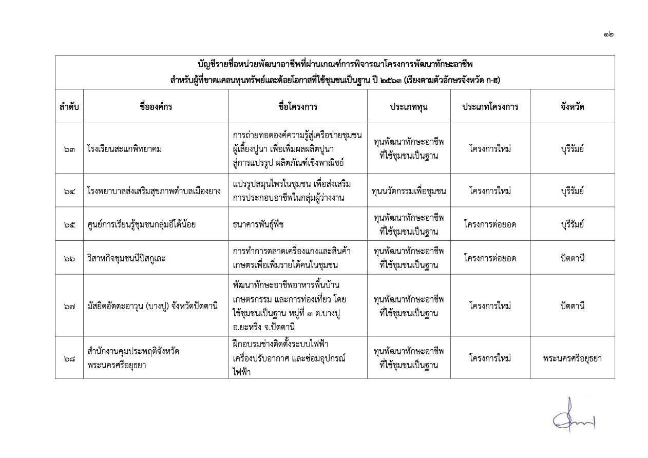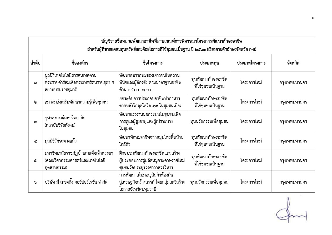 ประกาศ ผลการคัดเลือกหน่วยพัฒนาอาชีพที่ผ่านเกณฑ์การพิจารณาโครงการพัฒนาทักษะอาชีพ สำหรับผู้ที่ขาดแคลนทุนทรัพย์และด้อยโอกาสที่ใช้ชุมชนเป็นฐาน ปี 2563
