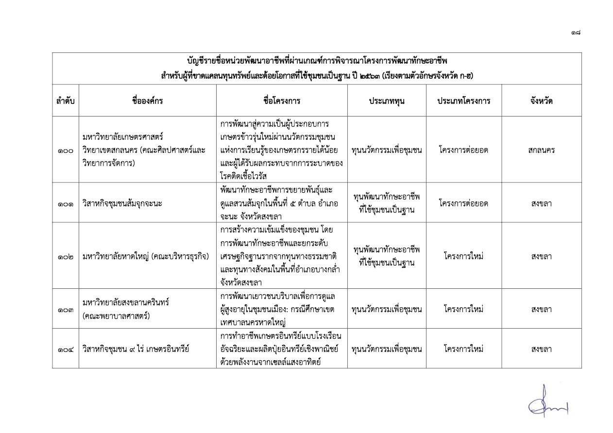 ตามที่กองทุนเพื่อความเสมอภาคทางการศึกษา (กสศ.) ได้ประกาศสนับสนุนโครงการพัฒนาทักษะอาชีพสำหรับผู้ที่ขาดแคลนทุนทรัพย์และด้อยโอกาสที่ใช้ชุมชนเป็นฐาน ปี 2563 เมื่อวันที่ 25 พฤษภาคม 2563 นั้น (คลิก เพื่อดูประกาศ) กสศ. ขอประกาศผลการดำเนินการ ดังนี้