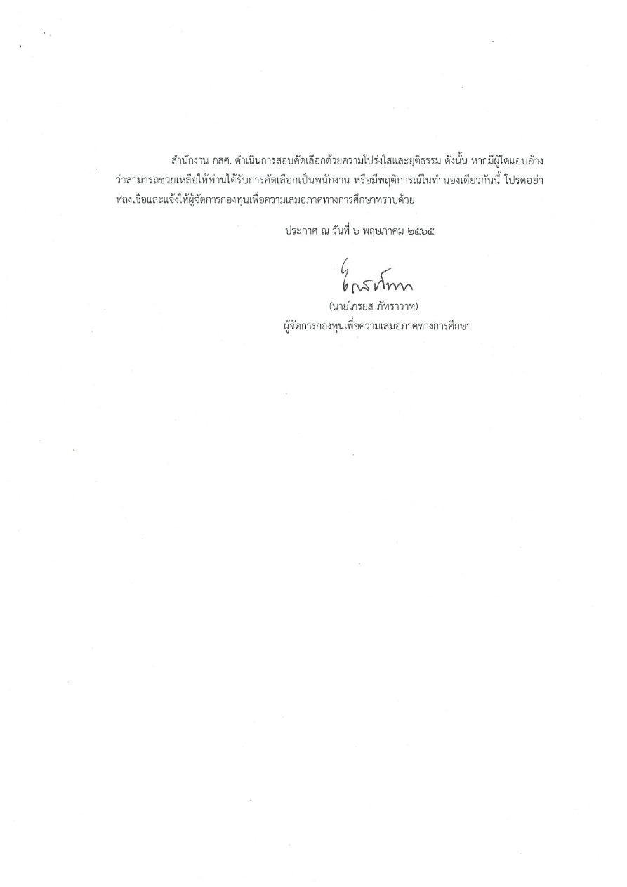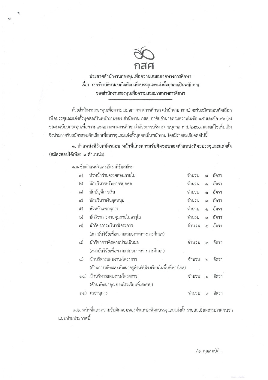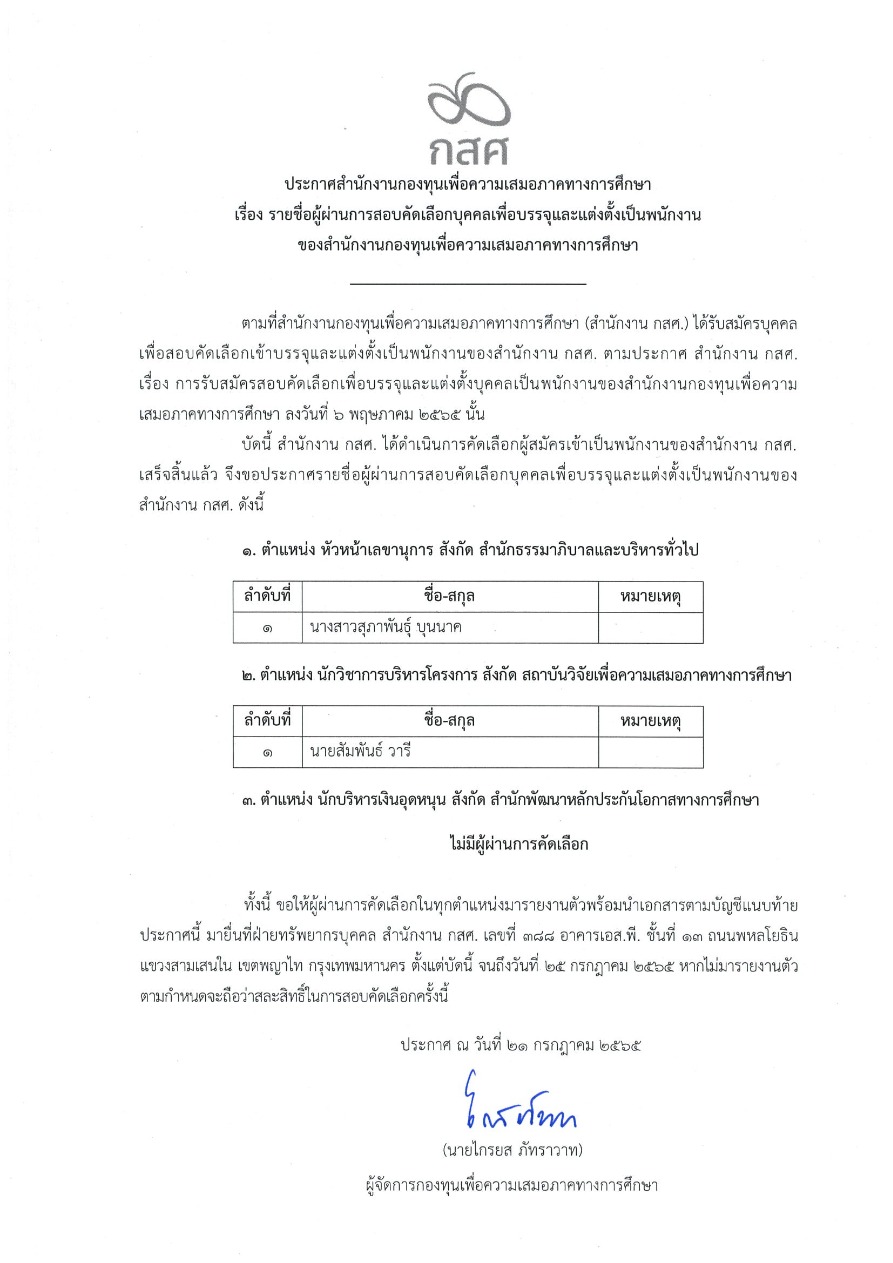ประกาศสำนักงาน กสศ. เรื่อง รายชื่อผู้ผ่านการสอบคัดเลือกเพื่อบรรจุและแต่งตั้งเป็นพนักงานของสำนักงาน กสศ. 21 ก.ค. 2565 ดาวน์โหลด