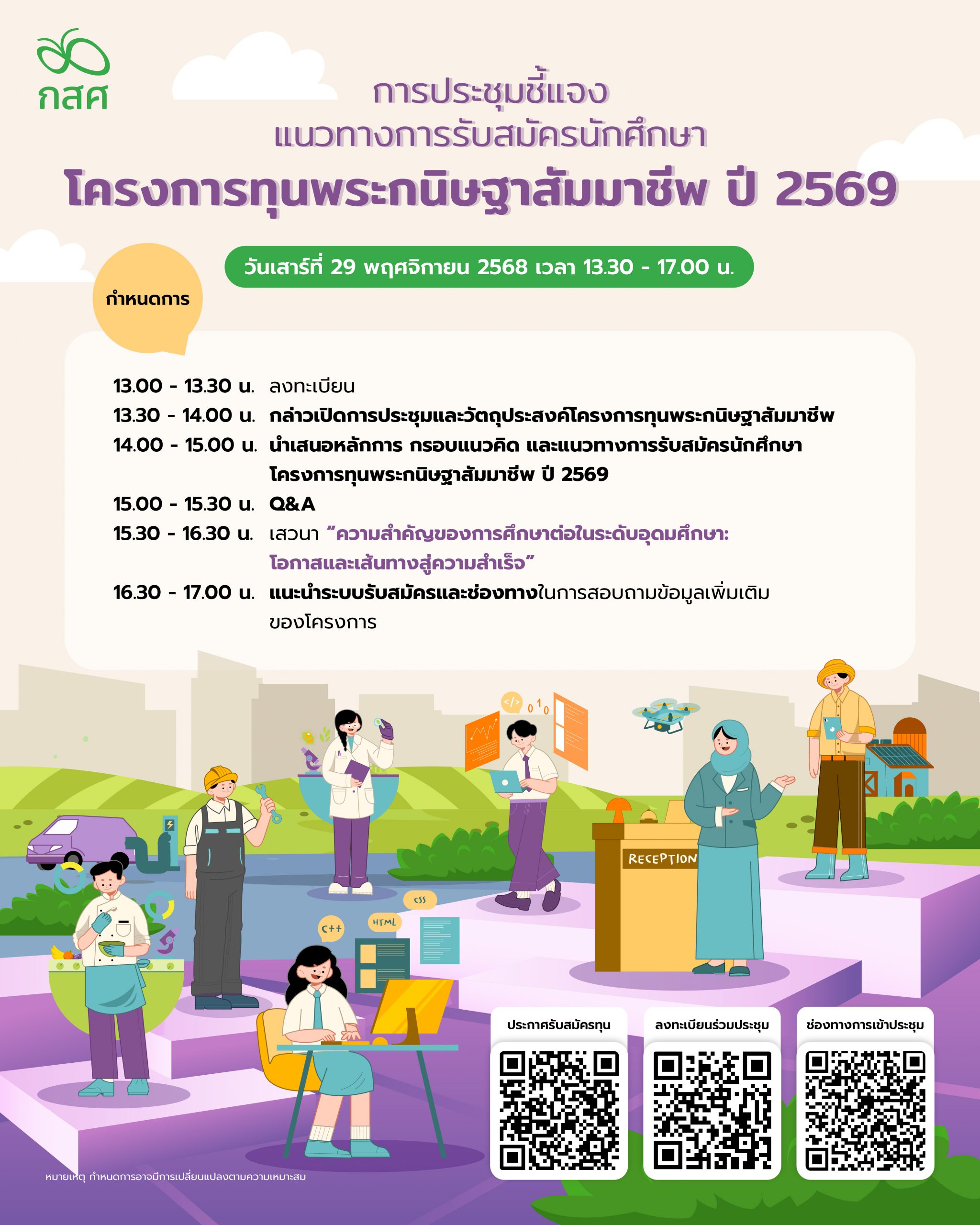 เข้าร่วมโครงการทุนพระกนิษฐาสัมมาชีพ (ระดับปริญญาตรี) ปีการศึกษา 2569 คลิก