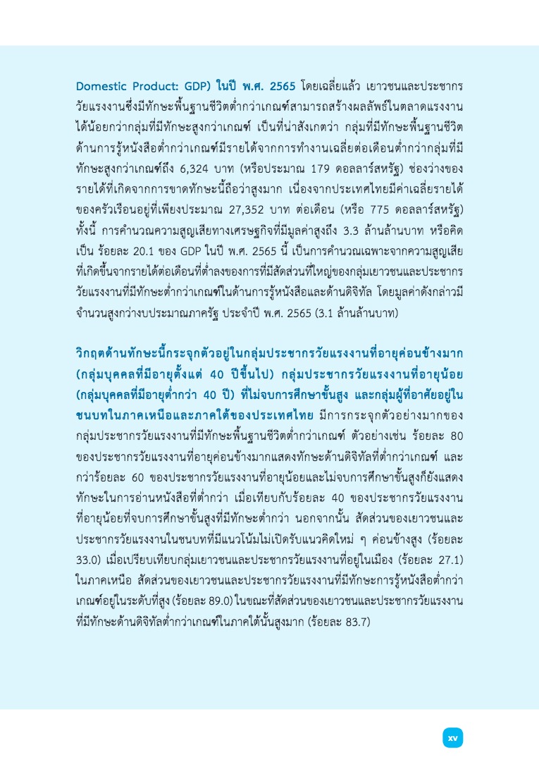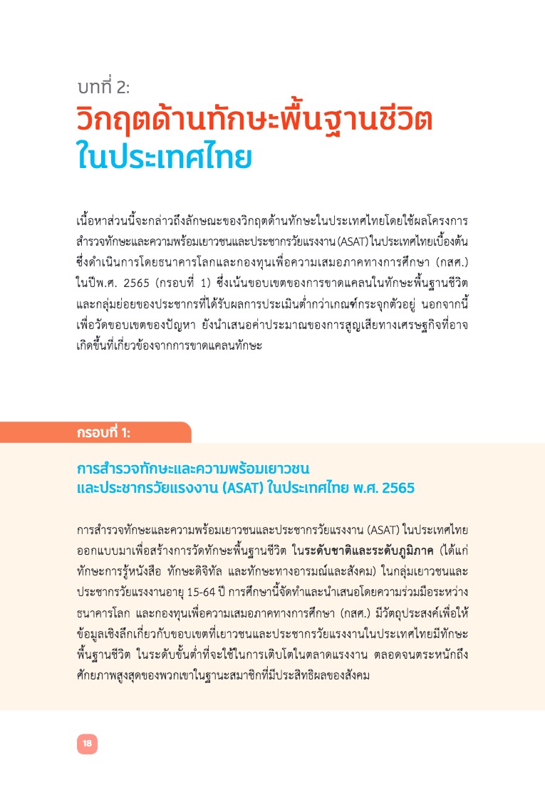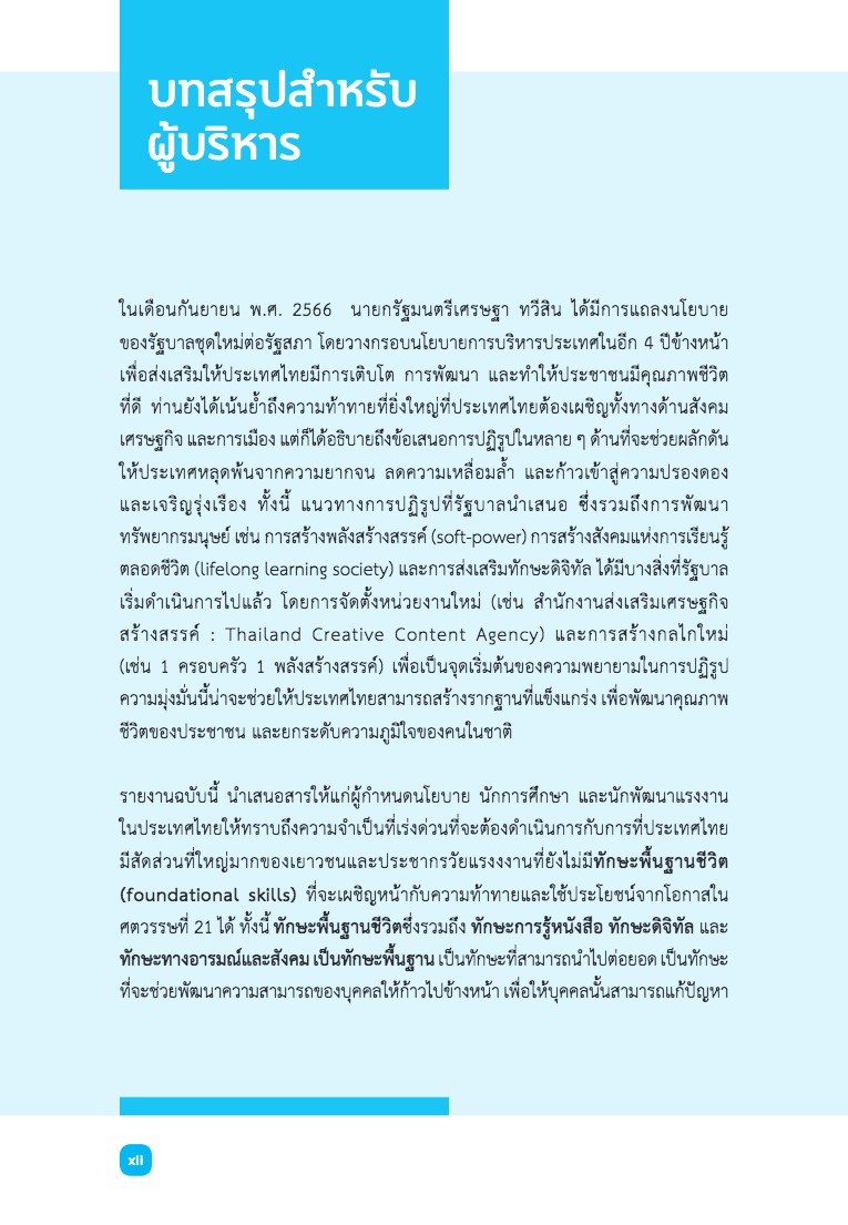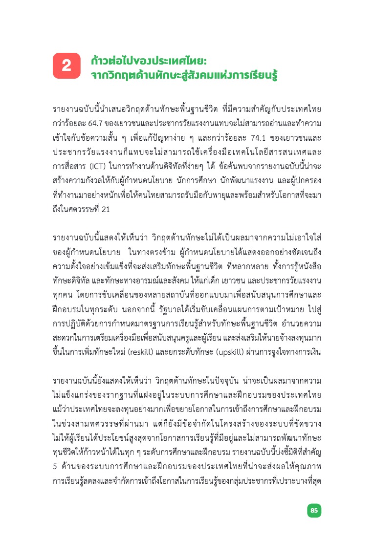 ทิศทางพัฒนาทักษะพื้นฐานชีวิต เพื่ออนาคตที่เข้มแข็งและยั่งยืนของประเทศ 21 กุมภาพันธ์ 256726 สิงหาคม 2024 ฉบับภาษาไทย ฉบับภาษาอังกฤษ ดาวน์โหลดเพิ่มเติม Download Download