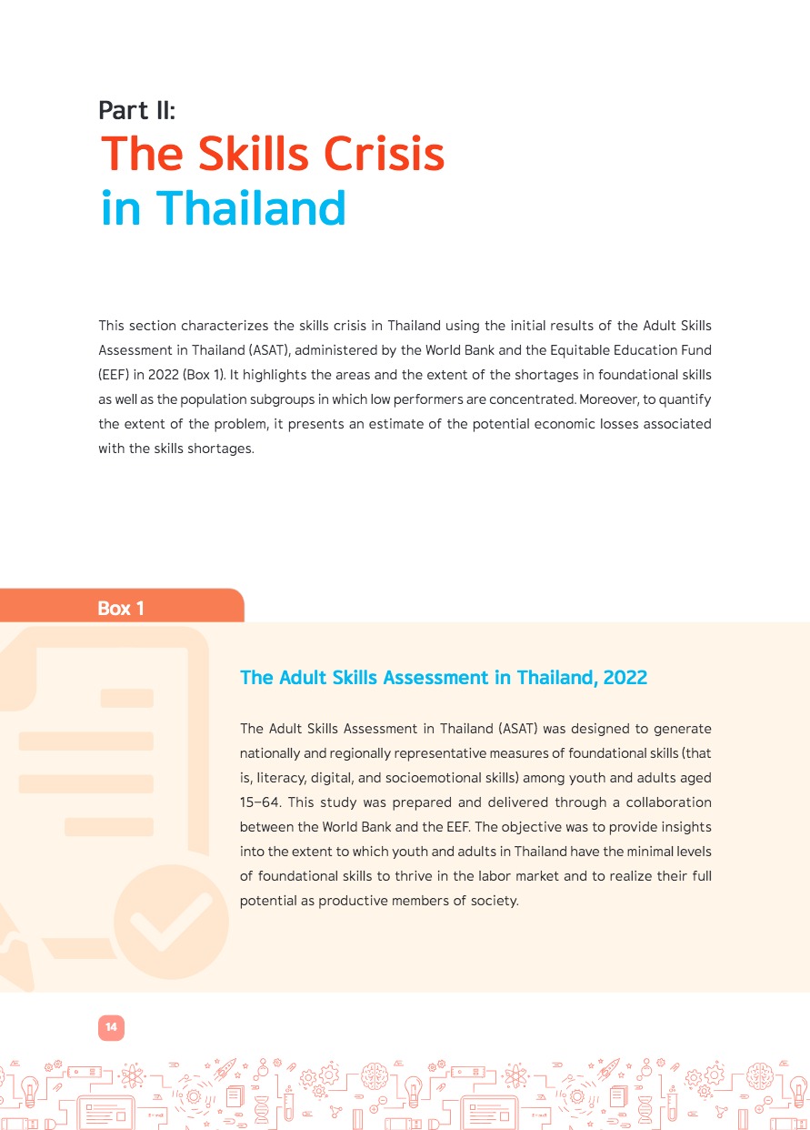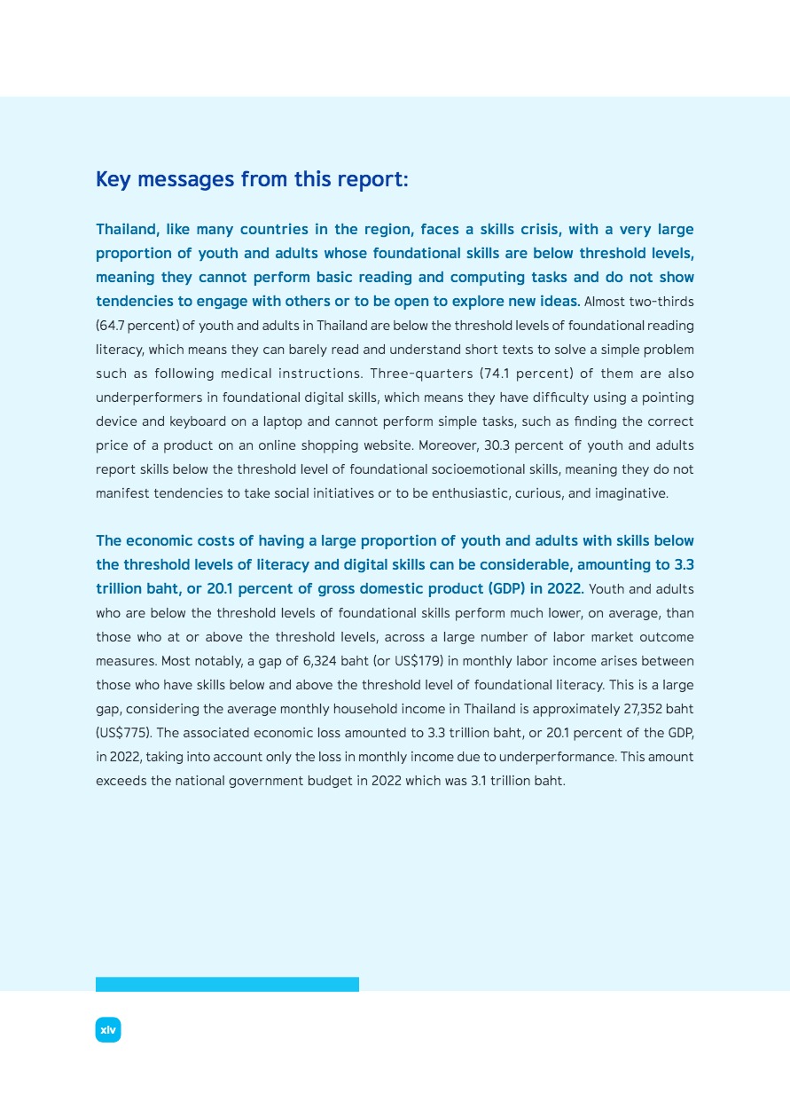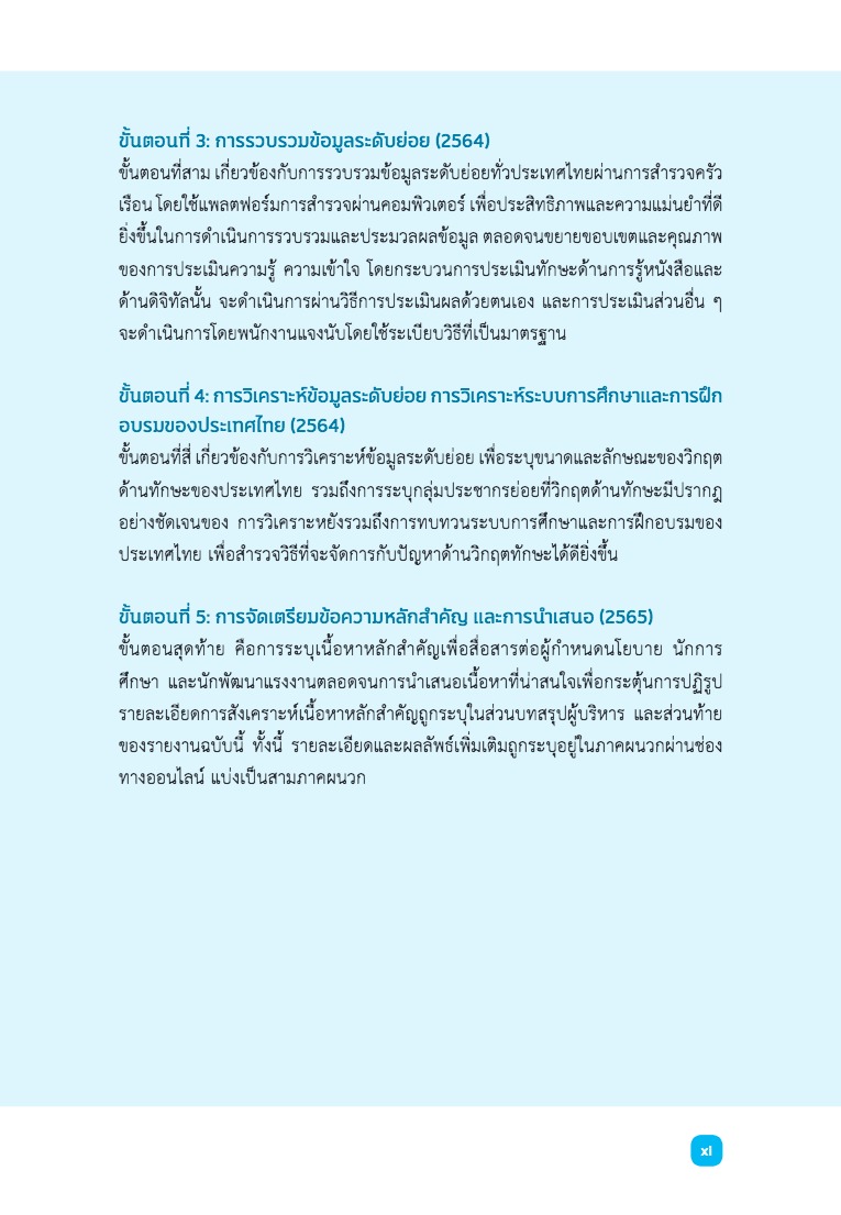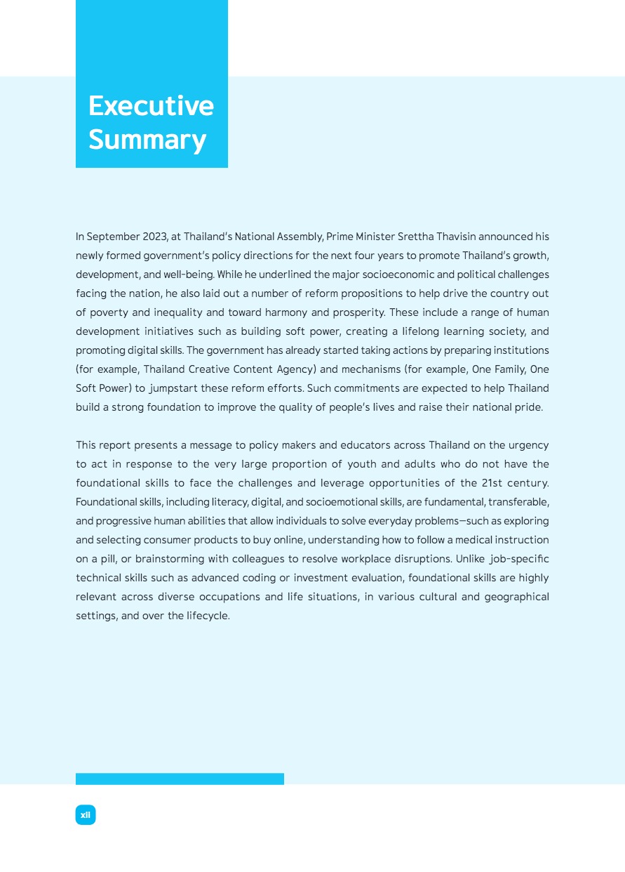 ทิศทางพัฒนาทักษะพื้นฐานชีวิต เพื่ออนาคตที่เข้มแข็งและยั่งยืนของประเทศ 21 กุมภาพันธ์ 256726 สิงหาคม 2024 ฉบับภาษาไทย ฉบับภาษาอังกฤษ ดาวน์โหลดเพิ่มเติม Download Download
