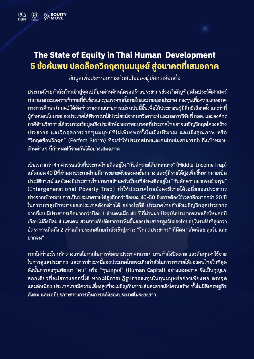 5 ข้อค้นพบ ปลดล็อกวิกฤตทุนมนุษย์สู่อนาคตที่เสมอภาค